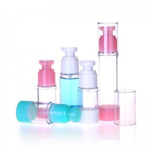 The vacuum bottle is usually cylindrical or oval, and the commonly used size is 10ml-100ml. The overall capacity is small. It relies on the principle of atmospheric pressure, which can avoid the pollution of cosmetics during use. The vacuum bottle can be treated with anodized aluminum, plastic electroplating, spraying, and non-ferrous plastics, etc. The price is more expensive than other ordinary containers, and the minimum order quantity is not high.